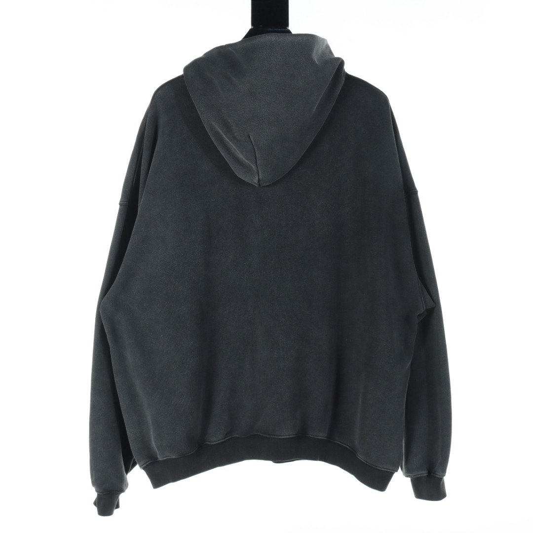 Balenciaga BLCG Sanskrit print mud-dyed zipper hooded sweatshirt jacket
