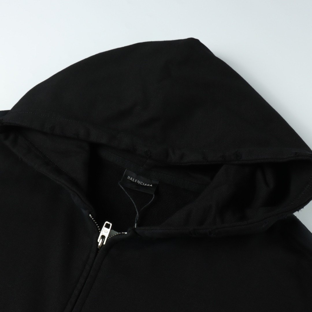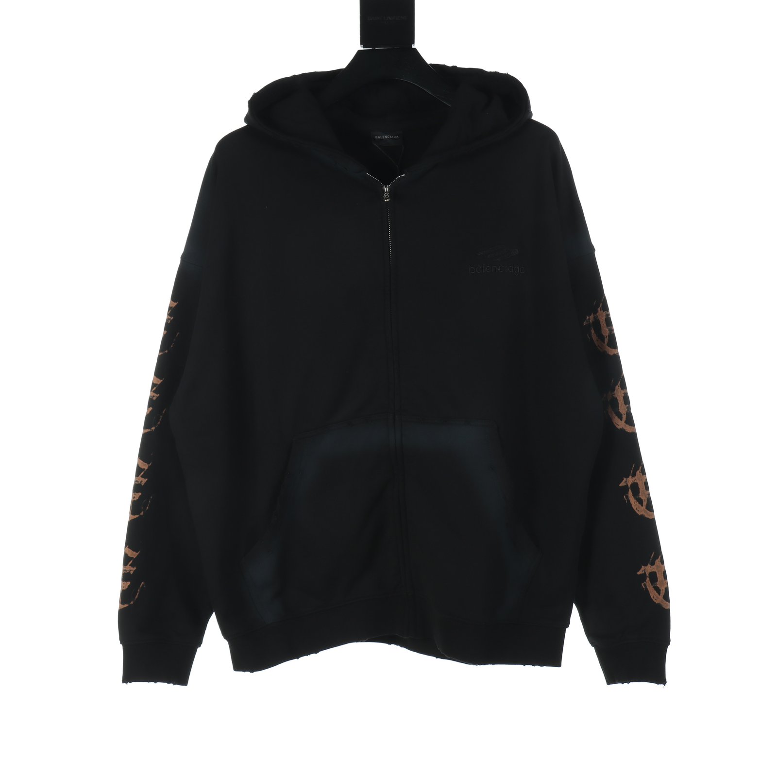 Balenciaga BLCG Sanskrit print mud-dyed zipper hooded sweatshirt jacket