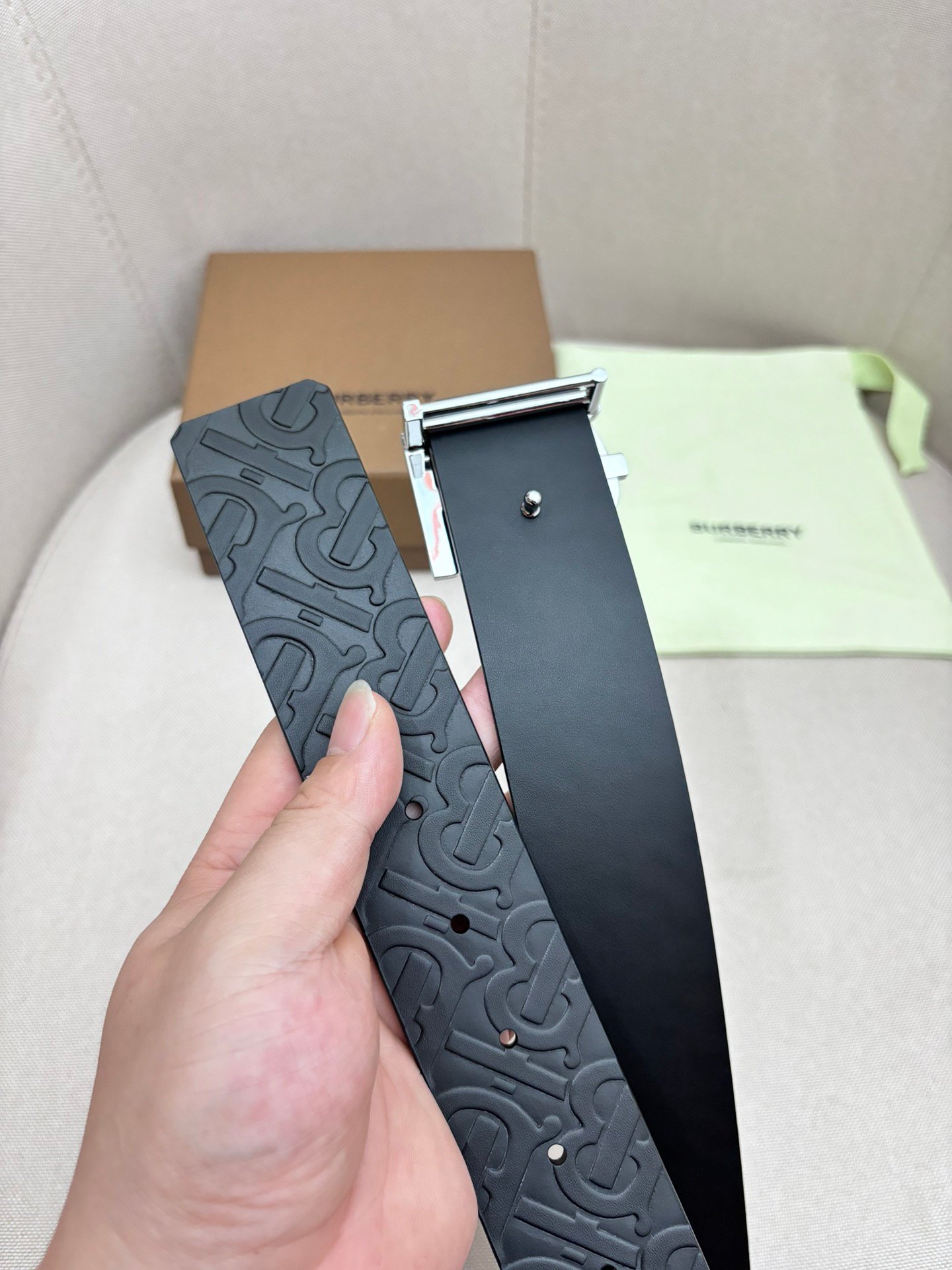 Be the first to review “BURBERRY Men’s Metal Buckle Top Layer Leather Double-Sided Belt Width: 4.0cm” Cancel reply