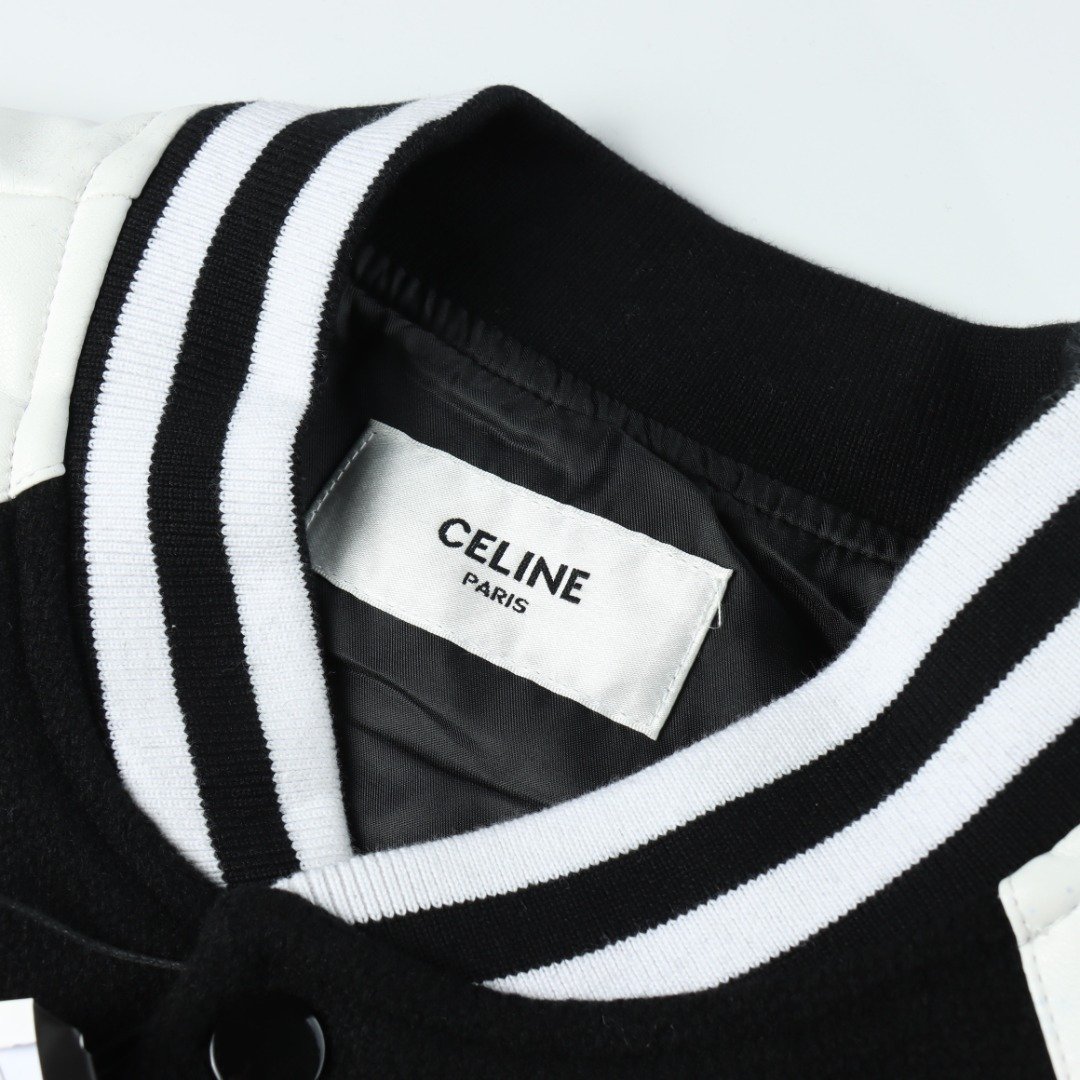 CELINE/Celine CE black and white stitching baseball jacket