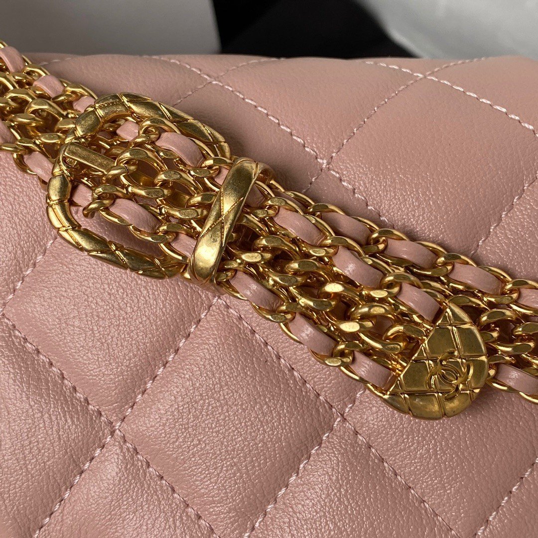 Chanel 23A Advanced Handicraft Shop Series BlackGold Leather Chain Piercing Bag AP3373, Top Quality Size: 11.5*26*4cm