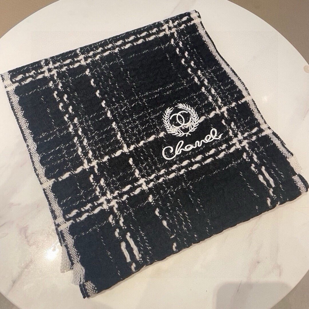 Chanel Classic Black and White Chanel Style Pattern 100% Sheep Wool Scarf Size: 32*186cm