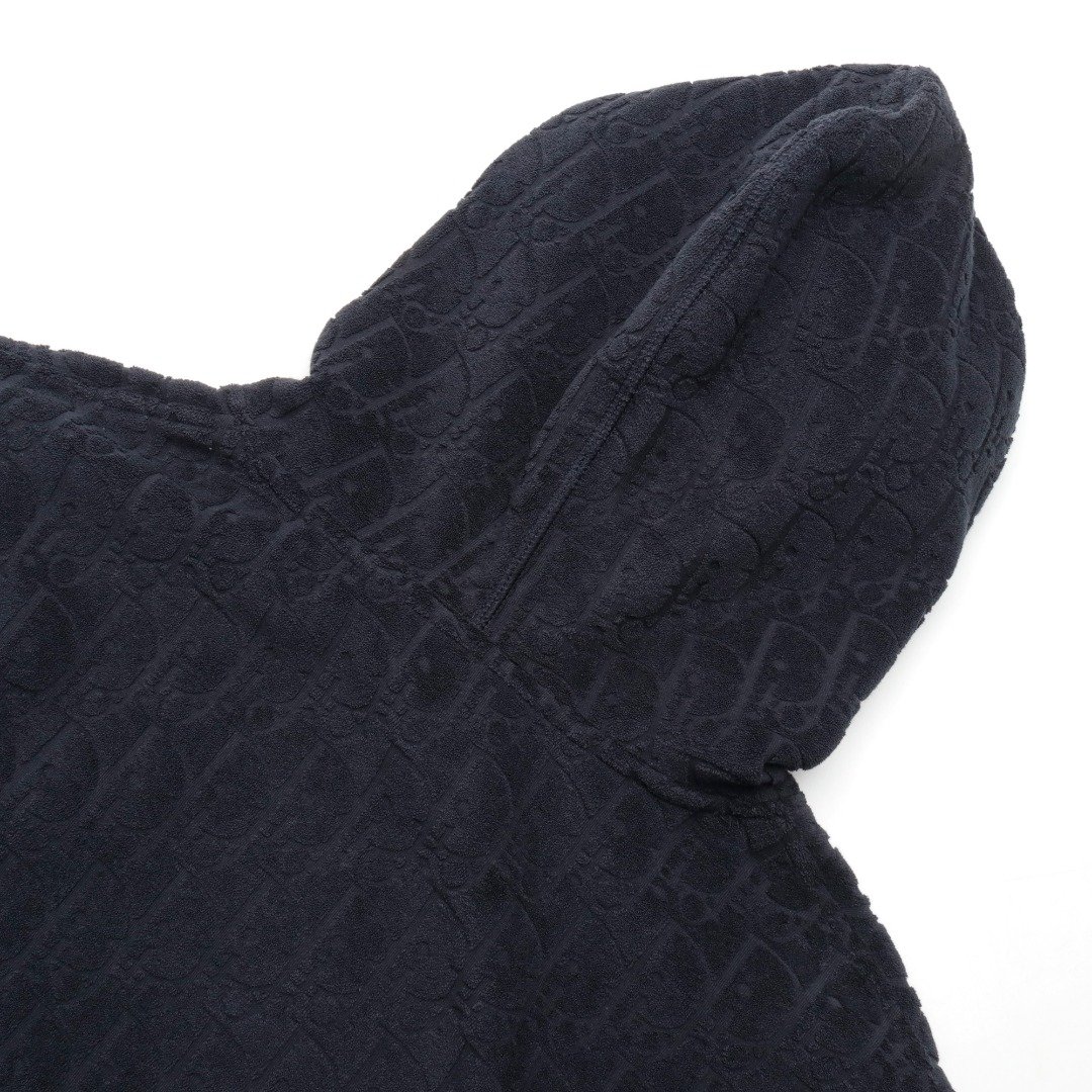 DIOR CD flocked full-printed letters navy blue hooded sweatshirt