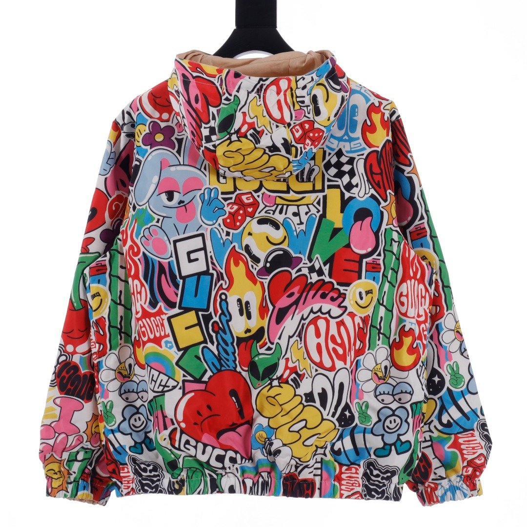 Gucci GUC 24Fw Love Cherry Fun Graffiti Reversible Jacket