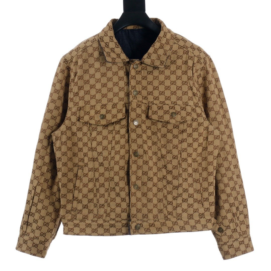Gucci GUC full print monogram jacquard double-sided denim jacket