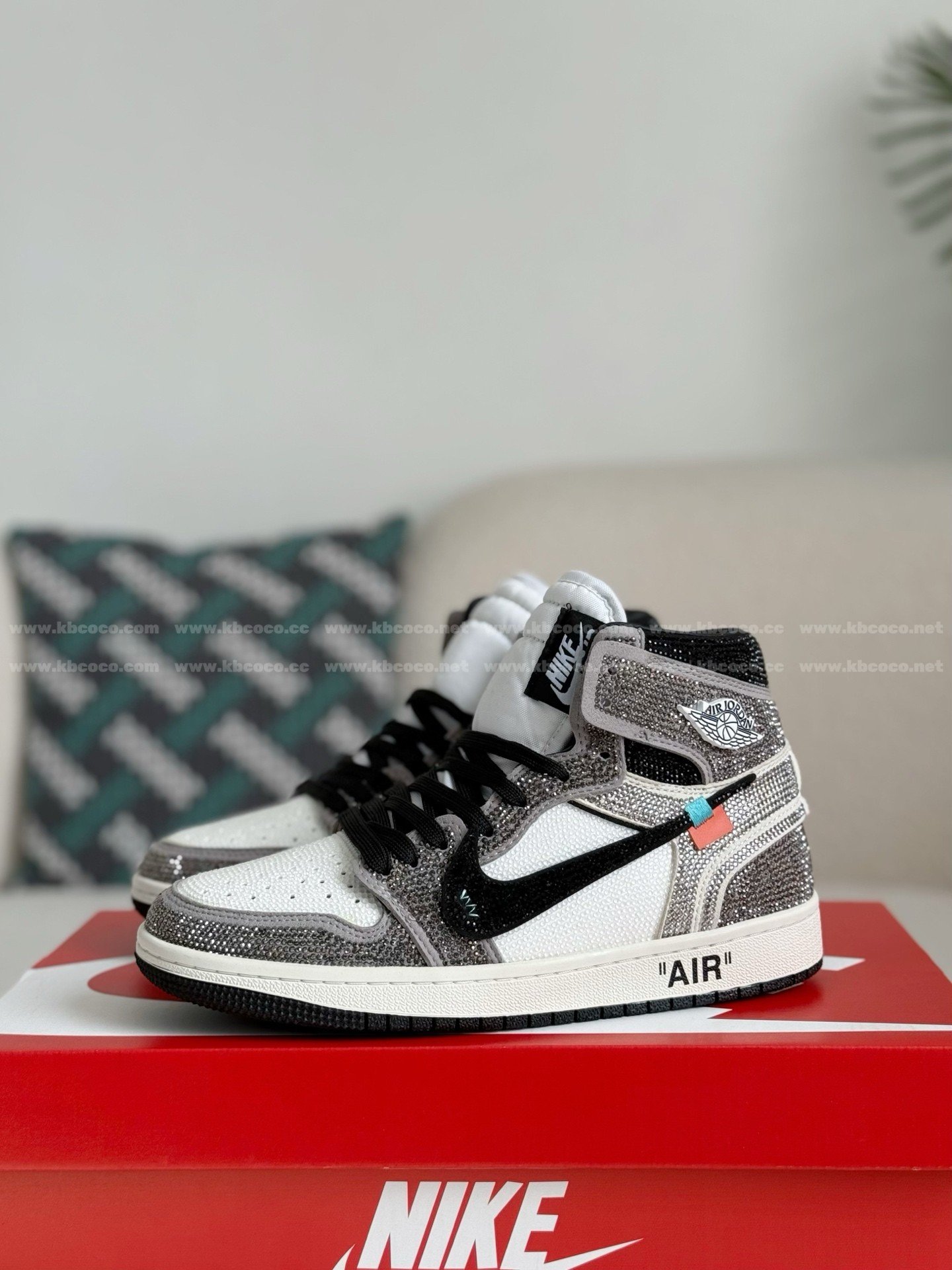 Product details Jordan 1 Off-white Hand-Set Rhinestones High Sneakers