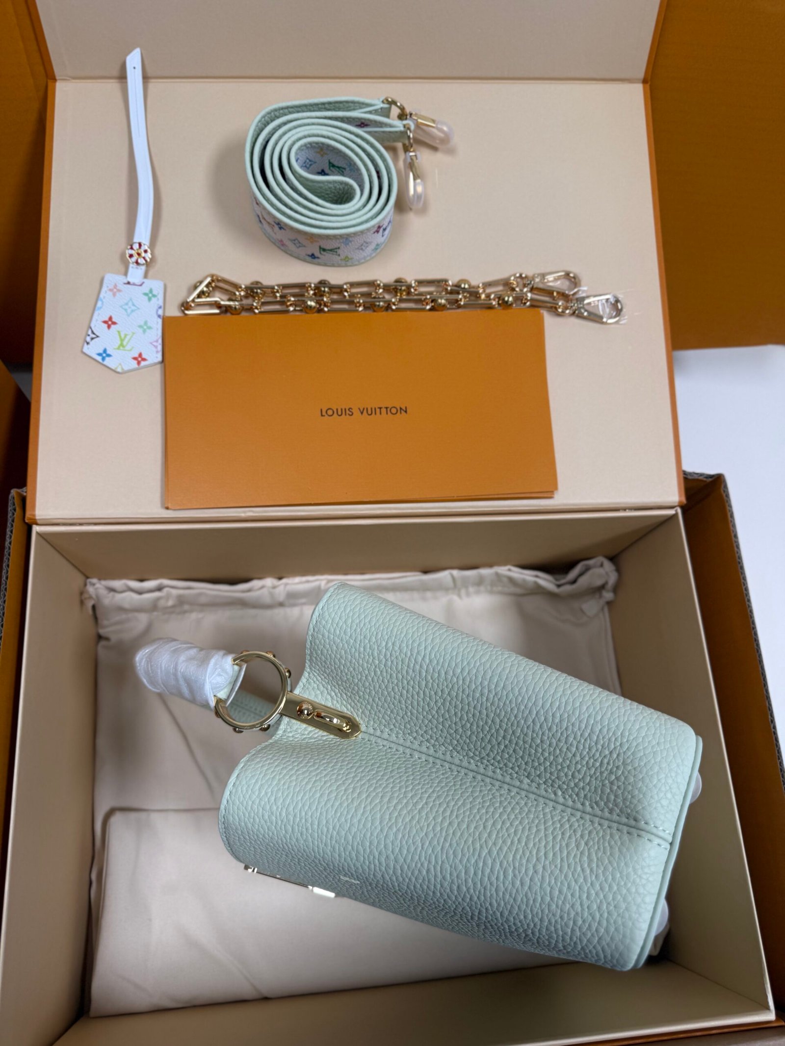 Be the first to review “Louis Vuitton x TM Capucines handbag in white and purple. Model: M13253 Dimensions: 27 cm x 17.3 cm x 9 cm.” Cancel reply