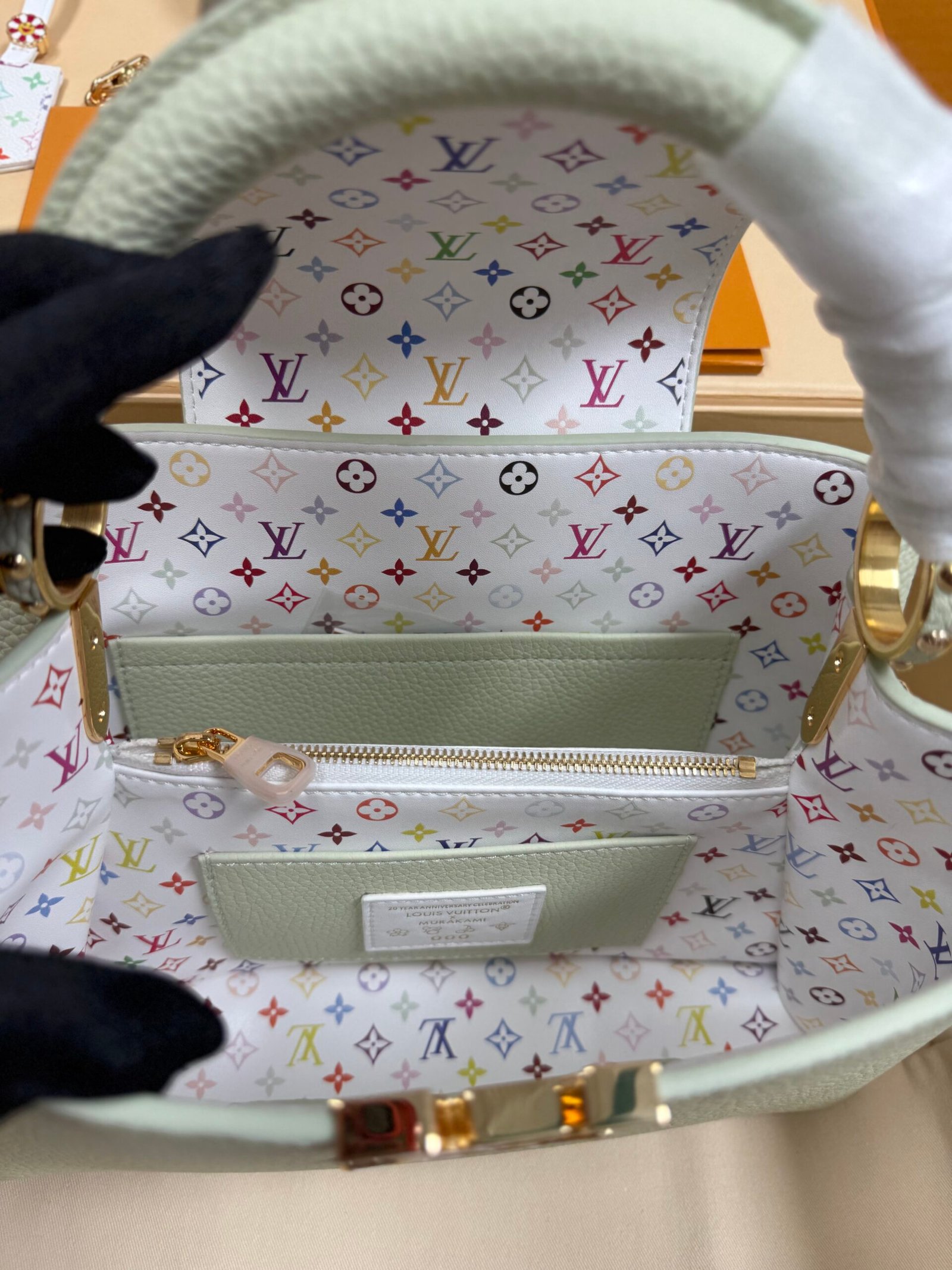 Louis Vuitton x TM Capucines handbag in white and purple. Model: M13253 Dimensions: 27 cm x 17.3 cm x 9 cm.
