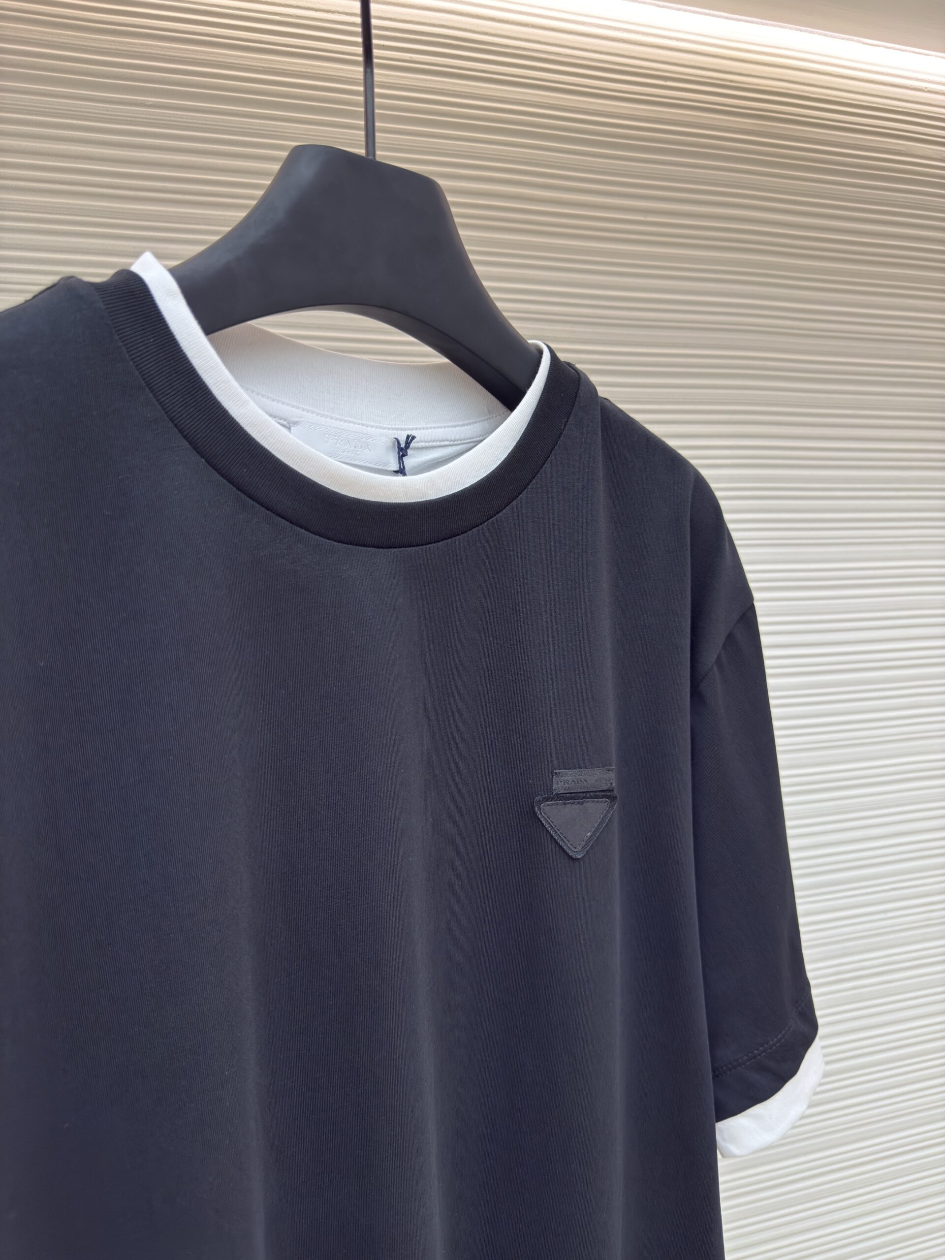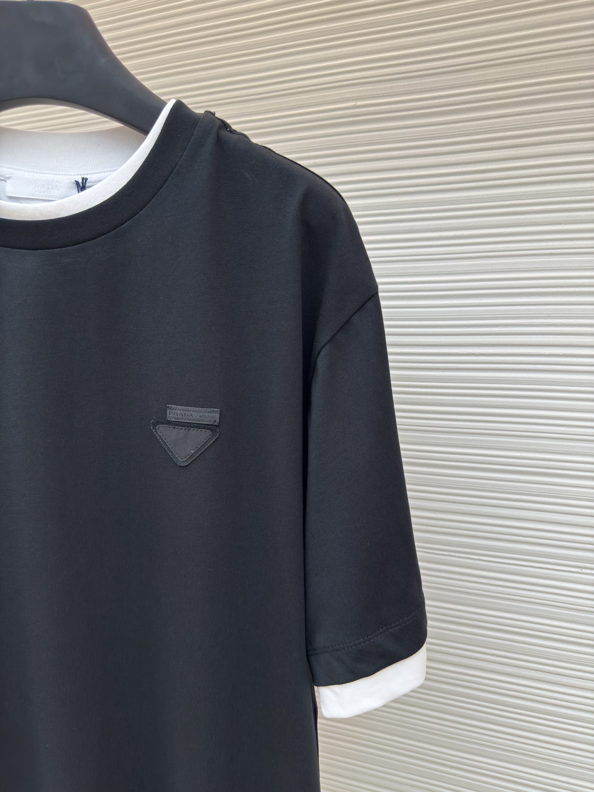 Prada triangular fabric logo round neck short sleeved shirt